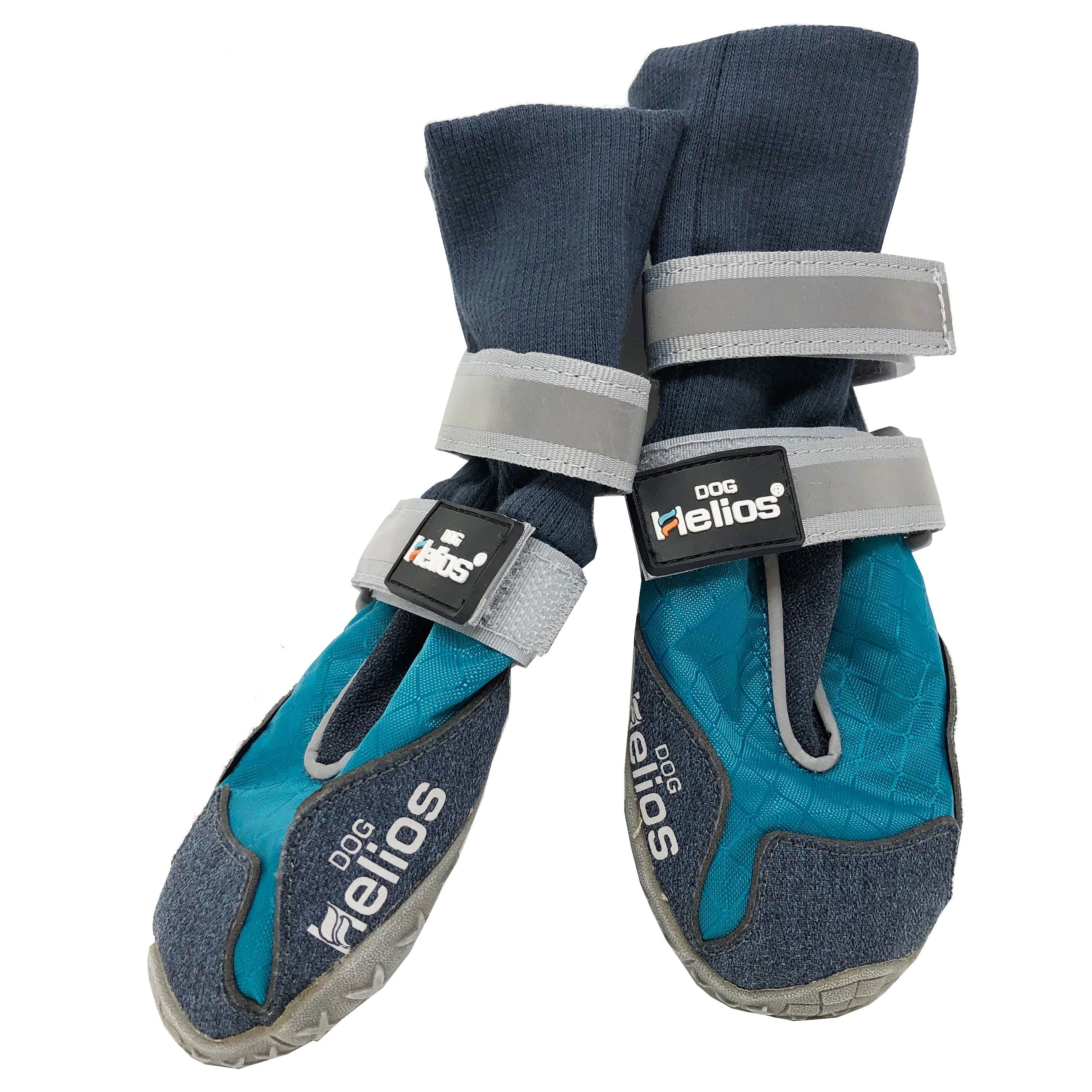 The Dog Helios 'Traverse' Premium Grip High-Ankle Outdoor Dog Boots are built and designed to outperform. Composed of a dual breathable brushed Nylon blended fabrics that are Durable, Flexible, Breathable and Water-Resistant with added reflective embedded stitching by the toe area. The bottom sole features Rubberized micro-grips for Premium traction perfect for the snow or icy floors, hiking and protects paws against the hot asphalt. Perfect for dogs in need of high-ankle support, elder dogs and dogs in recovery. These dog shoes feature extendable stitched socks great for proper circulation with dual supportive hook-and-loop straps that are further adjustable and reflective. These shoes are built-to-last. Available in Multiple Sizes and Colors.