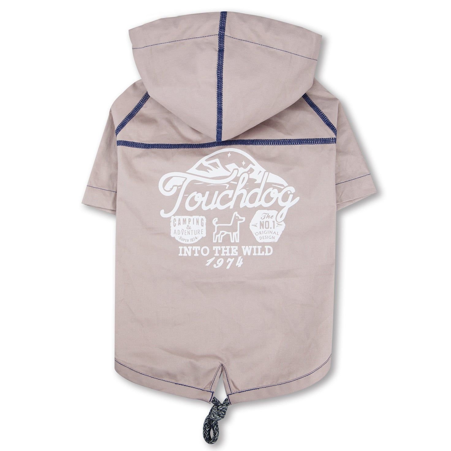 The Touchdog 'Cloudburst' Waterproof Reversible Dog Raincoat features a fashionable designer print along the back. The Exo-shell is waterproof treated with accented reinforced designer stitching around the body. Features adjustable pull hooded and back strings for a perfectly tailored fit. Features Belly-snap enclosures for convenient On and Off access and the Touchdog embroidered seal of excellence on the reverse. Available in Multiple Sizes and Colors.